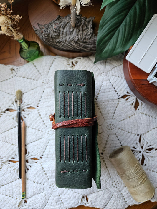 Forest Green Luxury Leather Journal with Unique Raw Edge