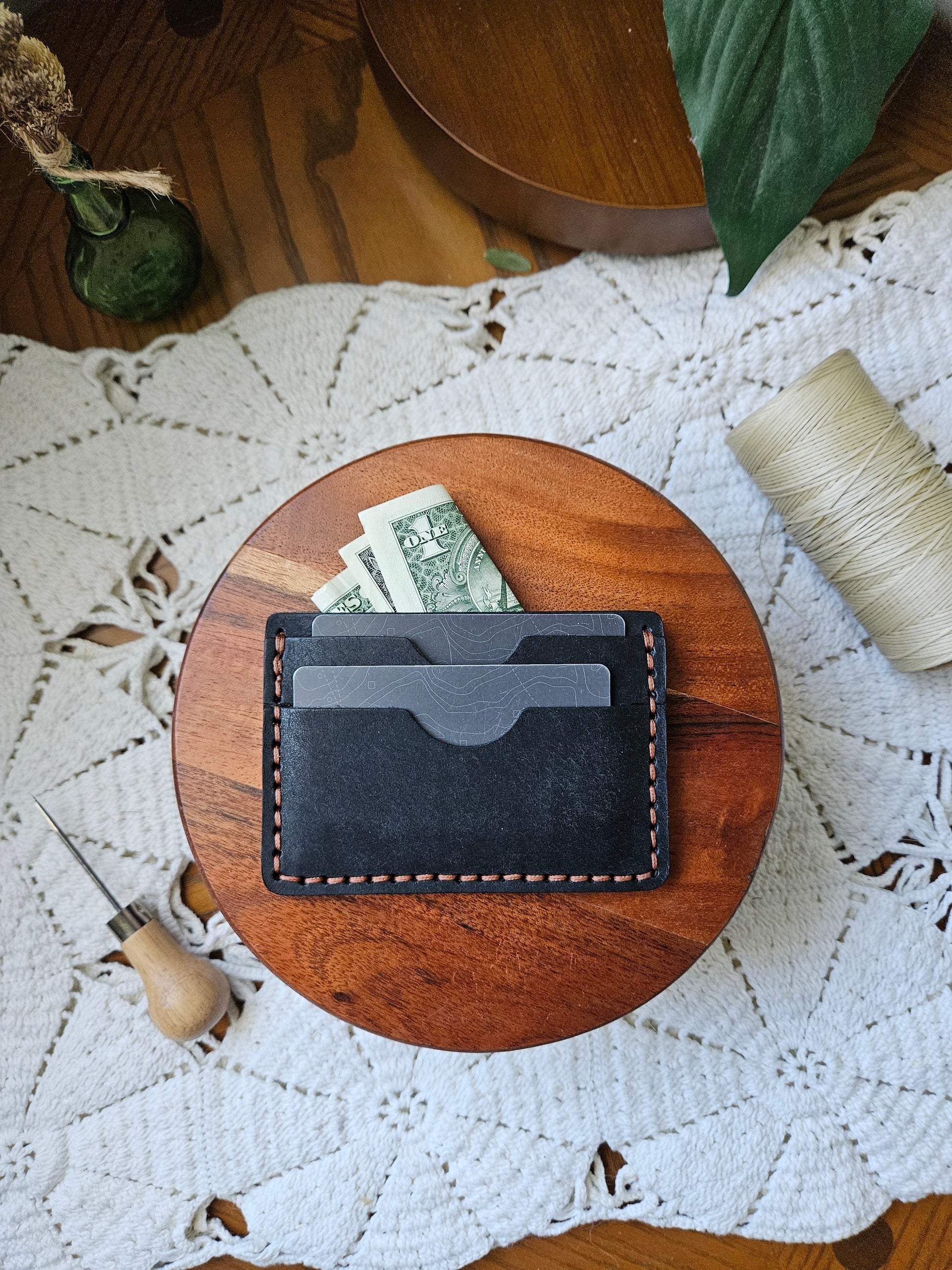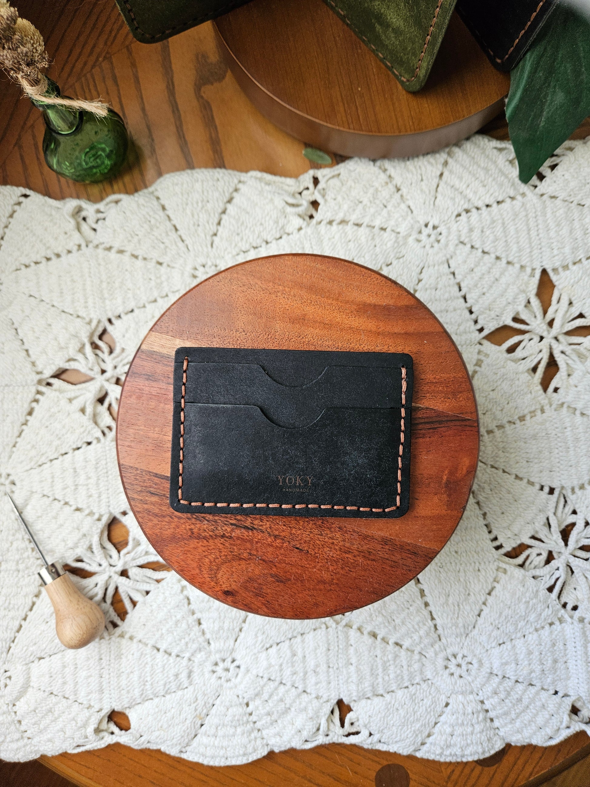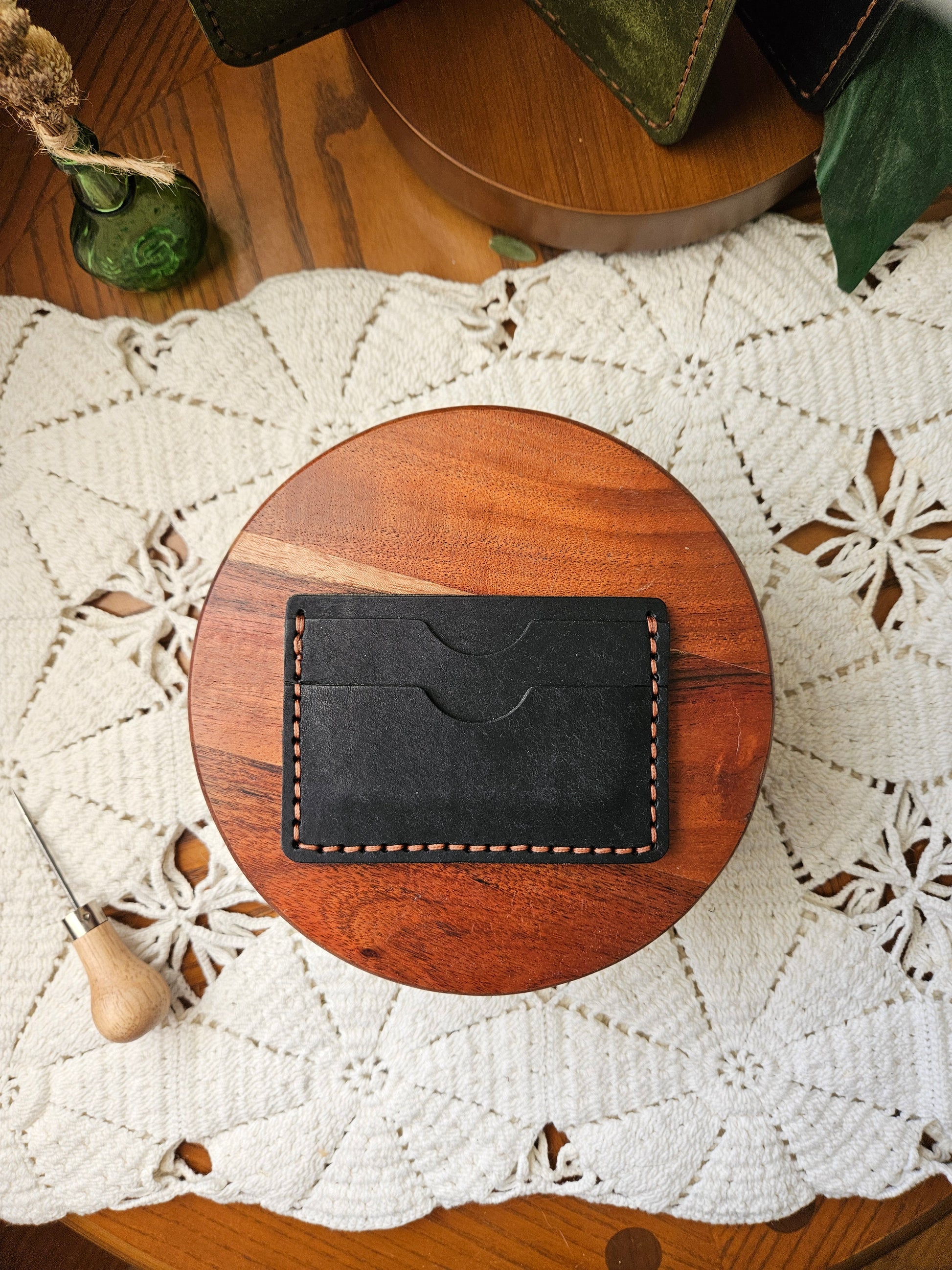 Introducing a handstitched leather minimal wallet, crafted from durable Italian leather that’s built to last. Its sleek design combines practicality with a unique look.